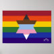 Lors des rassemblements et des marches de la Fierté, nous avons fièrement utilisé un drapeau de la fierté arc-en-ciel avec l'étoile blanche de David à A Wider Bridge. Le drapeau de la fierté a évolué pour inclure des couleurs inclusives. Nous ne voulions pas juste ajouter ces couleurs manquantes et l'étoile d'une manière qui puisse être enlevée, soit pratiquement et symboliquement. Nous avons donc inventé notre nouveau drapeau de la fierté juive inclusive. Le drapeau de la fierté d'origine, les couleurs inclusives, et l'étoile chacune représentent des parties inséparables de nos identités.