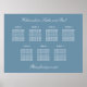 Dusty Blue 7 Table Mariage Seating Chart Poster, s'il vous plaît personnaliser les noms du couple et les noms des invités ainsi que l'un des autres textes que vous souhaitez personnaliser. Une affiche élégante avec un élégant texte blanc sur un arrière - plan bleu poussiéreux.