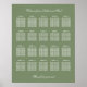 Sage Green 20 Mariage de table Poster de tableau, s'il vous plaît personnaliser les noms du couple et les noms des invités ainsi que l'un des autres textes que vous souhaitez personnaliser. Une affiche élégante avec un élégant texte blanc sur un arrière - plan vert sage.