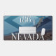 Une peinture numérique de paysage du lac Walker au Nevada. Au centre de l'oeuvre se trouve une forme de losange bleu. Au centre de cette forme se trouve l'année de la création de l'État, 1864, en blanc. Il y a une escalade de lézard zébrée en forme de losange. En grandes lettres blanches, NEVADA, se trouve au bas de l'oeuvre. Il y a une frontière simple pour encadrer l'art. Copyright ©2023 Kimberly J Tilley.