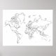 Carte du monde avec des contours vierges des continents et des pays en noir et blanc à utiliser à des fins éducatives ou pour garder une trace des endroits que vous voyagez ou faites des affaires. pays étiquettes avec vos propres informations. Idéal pour la salle de classe ou la salle de classe pour enfants.