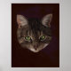 Portrait numérique d'un chat tabby brun sur un arrière - plan peint, rouge-violet très foncé.