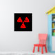 Affiche noire avec symbole patiné de rayonnement rouge.