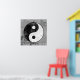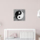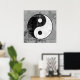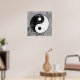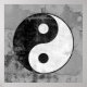 Poster en noir, blanc et gris, le symbole du yin yang, lourdement affligé.