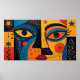 Duality in Bloom" is a captivating modern abstract painting that explores the interplay of identity, emotion, and nature through a bold, vibrant color palette and a symmetrical dual-face composition. Inspired by cubist and surrealist movements, this artwork features a split visage — one half rendered in deep indigo and cool teal tones, symbolizing introspection and mystery; the other in radiant yellows and warm oranges, evoking vitality, extroversion, and solar energy.