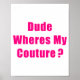 Poster Dude Where's My Couture Sarcastic Funny Saying Shi