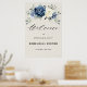 Dîner de répétition avec un beau décor de fleurs bleues poussiéreuses, avec un bouquet élégant de bleu marine, bleu royal, blanc, or, champagne ivoire, rose couleur rose, boutons de fleurs de renoncule et feuilles d'eucalyptus vert sauge et bouquet aquarelle élégant. Veuillez me contacter pour toute aide à la personnalisation ou si vous avez besoin d'un autre produit avec ce design.