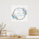 Poster Dusty Blue Silver Fleurs élégantes fête d'annivers