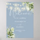 Poster Dusty Blue String Lights Floral Mariage Welcome