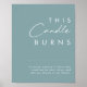 Cette enseigne This Dusty Boho | Blue this candle burns est parfaite pour votre mariage rustique et bohème coloré. Son design moderne simple et unique, accompagné d'une écriture minimaliste contemporaine et d'une palette de couleurs bleu poussiéreux, donne à ce produit une ambiance chic et bohème classique. Gardez-la telle quelle ou choisissez de la personnaliser avec des illustrations ou des graphiques de votre choix. Vous pouvez également consulter d'autres produits de cette collection pour harmoniser l'ensemble de votre mariage !