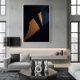 An abstract composition defined by angular shapes and diagonal layers that create a dynamic visual flow. Deep blue tones blend with soft golden accents, resulting in a sophisticated and modern artwork, ideal for spaces that value elegance and contemporary design.
