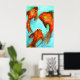 avec un design artistique original de la peinture aquarelle de Sacha Grossel de trois poissons rouges orientaux orange ou de Koi nageant dans une eau sereine couleur aqua. Un design paisible inspiré de l'art japonais et asiatique pour la chance Feng Shui water chi, ce design lumineux et dynamique laissera une impression durable.