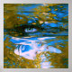 Eaux Mystiques : Un oeil apparaît au milieu d'une mer tourbillonnante d'or et de bleu, avec un reflet subtil d'un visage dans l'eau. Cette image surréaliste traduit l'idée d'explorer les profondeurs de notre psyché et la dualité de la perception et de la réalité, où rêves et conscience se mêlent.