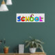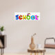Belle illustration de dessins animés de petits garçons et filles escalade sur des lettres géantes de l'alphabet qui épelent le mot SCHOOL. Image disponible sur divers cadeaux et produits. Posters. Tirages.