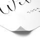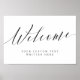 Calligraphie élégante et simple pour panneau de bienvenue de mariage ou pour tout événement, avec de belles lettres fantaisistes et votre texte personnalisé. Un design formel élégant mais simple en noir et blanc ou dans la couleur de fond de votre choix. Cliquez simplement sur le lien "personnaliser davantage" qui apparaît sous la zone de personnalisation du texte à droite, et choisissez la couleur de fond personnalisée. Ce modèle d'affiche permet de créer rapidement et facilement des éléments superbes pour votre décoration de mariage. Les panneaux peuvent être agrandis, il existe de nombreuses tailles parmi lesquelles choisir, ainsi que des options de cadre et de carton de montage personnalisés. Panneaux de signalisation personnalisés bienvenus.