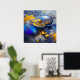 Poster Edgy Moderne Bleu Jaune Métallurgique Champignons