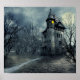 Poster Éffrayant Halloween ! Maison hantée sur un cimetiè