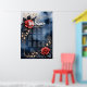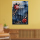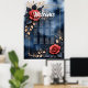 Elégant agencement rose avec feuillage doré sur un arrière - plan d'aquarelle bleu foncé. Un design élégant et décoratif avec des roses rouges, des feuilles foncés et des touches dorées contre un arrière - plan bleu foncé et aquarelle. Le cadre doré délicat et le placement équilibré des fleurs confèrent au motif un charme raffiné et sophistiqué. Parfait pour tous ceux qui aiment l'art floral élégant, les roses romantiques et les contrastes de couleurs luxueux. Idéal pour l'art mural, la décoration maison, les accessoires de mode et les cadeaux avec une touche de sophistication.
