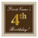 Poster Elégant, Brown, Faux Gold 4ème anniversaire + Nom