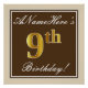 Poster Elégant, Brown, Faux Gold 9e anniversaire + Nom