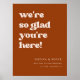 Nous sommes si heureux que vous soyez ici signe de bienvenue mariage. Un thème rétro chic : adoptez ce design typographique vintage et élégant pour votre papeterie Mariage, avec un thème couleur orange brûlé. Facile à mélanger avec notre papeterie similaire disponible en rose pêche, en terre cuite et en sucre brun. Couleurs et arrière - plans de texte entièrement personnalisables.