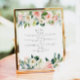 Poster Élégant Dîner Floral Rose-Bleu Menu Signe