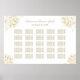 L'élégante conception de l'affiche du mariage de pivoines comprend un monogramme des noms de mariée et de mariée et la date du mariage, du texte modèle personnalisé pour les numéros de table et les noms d'invités, ainsi que des pivoines avec un look dessiné / dessiné à la main. Les couleurs comprennent le latte/champagne, les pivoines florales or, l'arrière - plan blanc et le texte d'or antique.