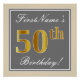 Poster Elégant, gris, Faux Gold 50e Anniversaire + Nom