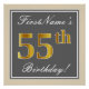 Poster Elégant, gris, Faux Gold 55e anniversaire + Nom