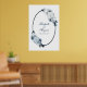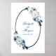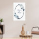 Une élégante affiche de cerceau bleu à fleurs mariage avec les noms de la mariée et du marié et leur date de mariage.