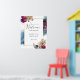 Bienvenue à vos invités avec ce magnifique panneau d'accueil avec des taches célestes délicates aquarelles en cascade derrière un élégant cadre doré avec un coin aquarelle fleuri montrant message d'accueil. Bienvenue dans la gracieuse calligraphie manuscrite moderne. Capacité de personnalisation avec n'importe quel événement, nom et date. Possibilité de choisir parmi une variété de tailles jusqu'à 24" x 30". Facile à monter ou à agrafer/colle sur une carte MDF peu coûteuse. Concevez la coordination de nos invitations Mystic Garden Celestial. Visitez toute la collection avec une variété de produits de coordination disponibles avec ce lien : https://www.zazzle.com/collections/mystic_garden_celestial_collection-119823869554047930