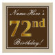 Poster Élégant, Marron, Doré Faux 72e Anniversaire + Nom