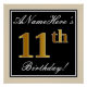 Poster Elégant, Noir, Faux Or 11ème Anniversaire + Nom