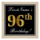 Poster Elégant, Noir, Faux Or 96ème Anniversaire + Nom