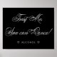 Cette belle et intemporelle signalisation horizontale "Faites-moi confiance You Can Dance, Alcohol" humoristique ajoute une élégance simple à toute réception de mariage classique, douche ou motif de fête. Le design de script luxueux comprend une calligraphie blanche moderne et fantaisiste. La belle police avec une couleur arrière - plan personnalisable permet de s'adapter facilement à n'importe quel thème. Pour d'autres couleurs ou produits correspondants, veuillez visiter le magasin JustFharryn Zazzle, ou contacter le concepteur, c/o Fharryn@yahoo.com Tous droits réservés. #zazzlemade