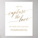 Ce panneau élégant de calligraphie dorée "capturez l'amour" est parfait pour un mariage simple. Le design neutre présente une affiche minimaliste décorée d'une typographie romantique et fantaisiste en faux feuillet doré. Le panneau indique "aidez-nous à capturer l'amour en utilisant le hashtag : votre hashtag".