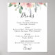 Ce panneau de menu de boissons de mariage floral rose pâle élégant est parfait pour un mariage moderne. Le design présente des roses et des pivoines rose pâle dessinées à la main avec des feuilles vertes et grises, inspirant une beauté naturelle.