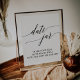 Ce panneau de pot de date en calligraphie noire élégant est parfait pour un mariage simple. Le design neutre présente une affiche minimaliste décorée d'une typographie romantique et fantaisiste.