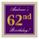 Poster Elégant, pourpre, Faux Gold 62e anniversaire + Nom