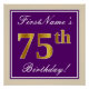 Poster Elégant, pourpre, Faux Gold 75e anniversaire + Nom