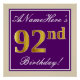 Poster Elégant, pourpre, Faux Gold 92e anniversaire + Nom