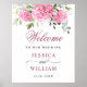 Poster Elégant rose Hydrangea Eucalyptus Mariage Bienvenu