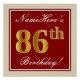 Poster Elégant, Rouge, Faux Gold 86e anniversaire; Nom pe