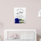 Présentez votre célébration mariage dans le style avec ce magnifique panneau. Son design est à la fois sophistiqué et sobre, avec une calligraphie de script délicate et un rose royal bleu ou cobalt à long tige gracieux, reflété dans un bassin d'eau, avec vagues et ondulations. Cette pièce exquise est la touche parfaite pour accueillir vos invités dans votre journée mémorable.