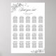 Élégant Écriture Calligraphie 20 Table Rose Mariage Tableau de siège. Panneau vintage Floral noir et blanc 20 Table Mariage Bienvenue Siège