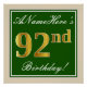 Poster Elégant, Vert, Faux Gold 92ème anniversaire + Nom