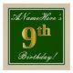 Poster Elégant, Vert, Faux Gold 9e anniversaire + Nom