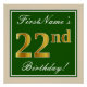 Poster Élégant, Vert, Faux Or 22ème anniversaire + Nom