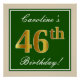 Poster Elégant, Vert, Faux Or 46ème Anniversaire + Nom