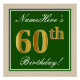 Poster Elégant, Vert, Faux Or 60ème Anniversaire + Nom